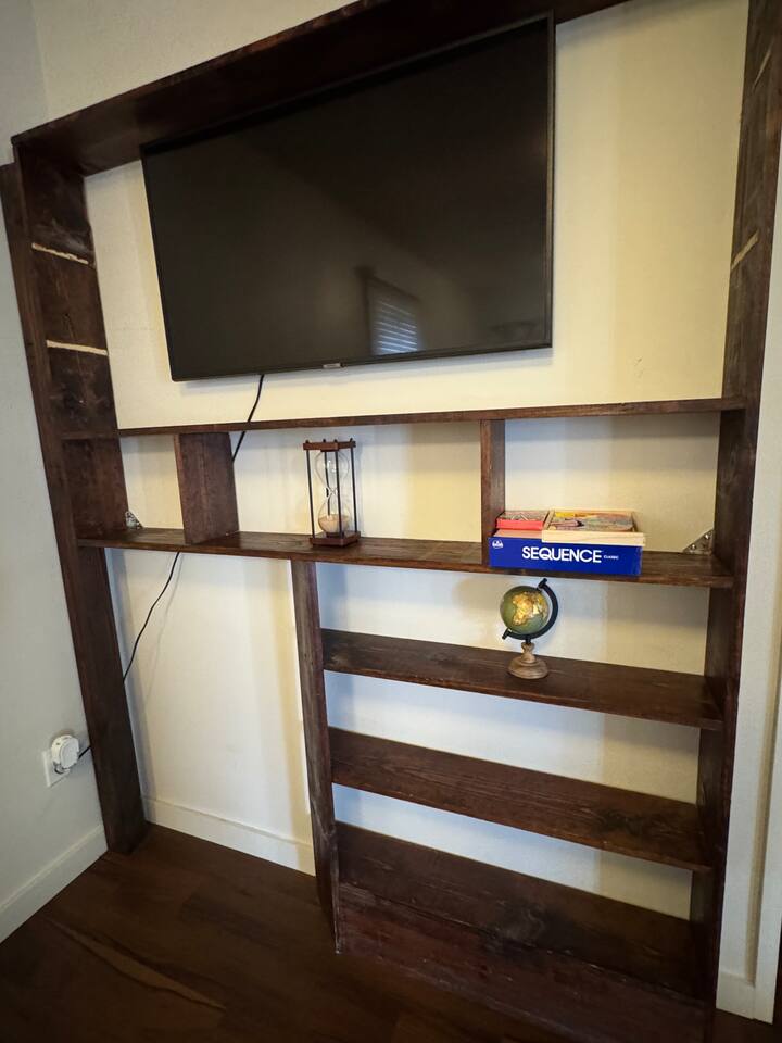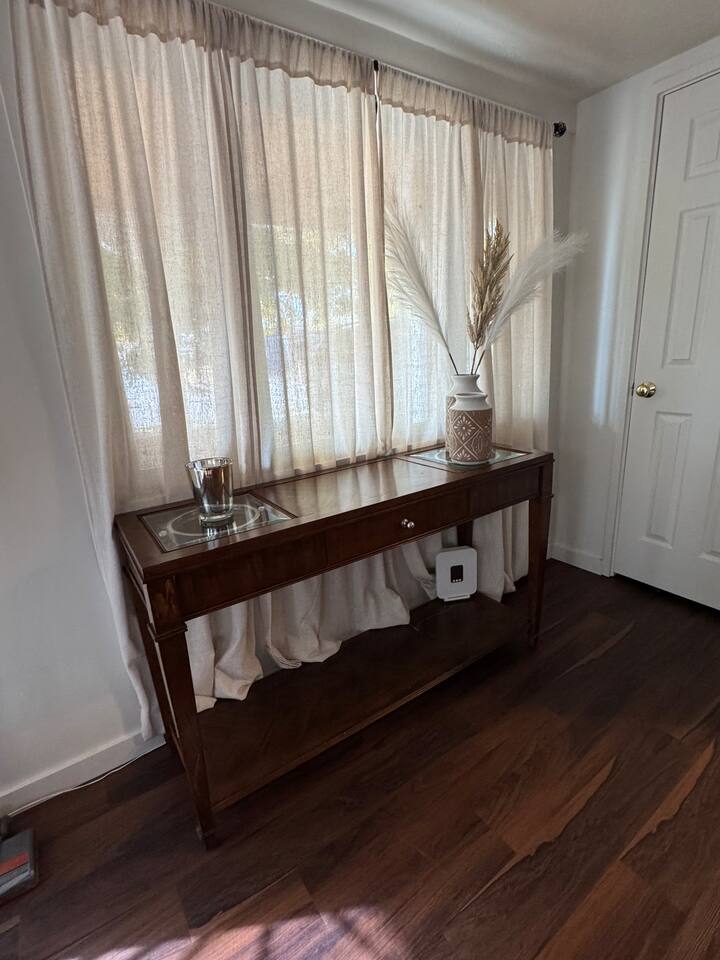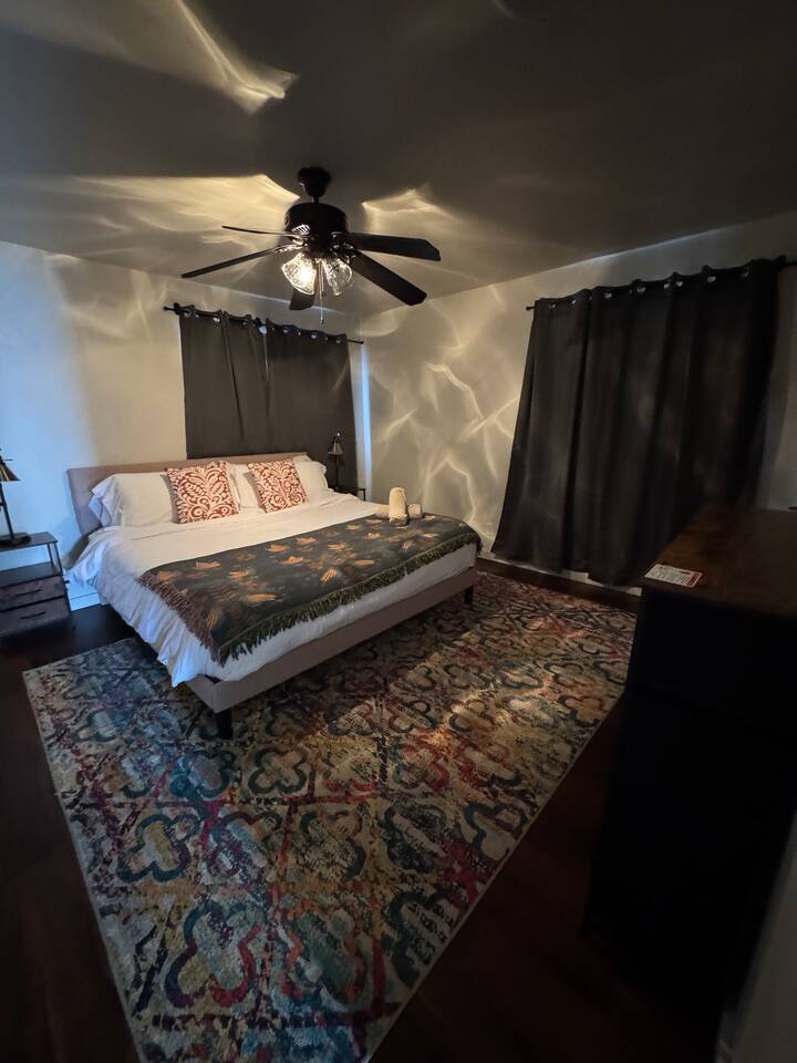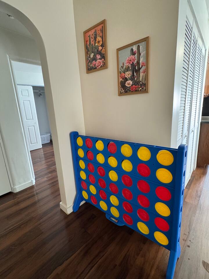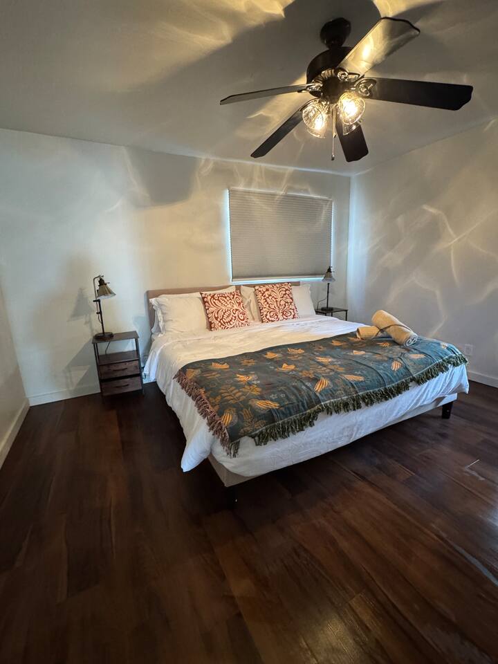 House Features: • WiFi • Washer/Dryer • Swap cooler for summer season, Central heat for winter • Games for kids and adults KITCHEN: • Appliances ( blender and toaster) • Dishes / silverware/ glasses / coffee mugs / cookware • Drip coffee maker • Dinning tablet for 6 LIVING-ROOM • Smart TV ( Hulu, Netflix, Prime and more app that you can open your account on) SLEEPING • Bedroom #1 has KING bed • Bedroom #2 has QUEEN bed • Living room has QUEEN sofa bed BATHROOM • Fresh clean towels • shampoo/conditioner/body-wash/lotion • Hairdryer • Q-tips / cotton balls OUTDOORS • Grill gas and charcoal • Dinning tablet for 6 • Fire-pit area * The only lighting in the back yard is a motion sensor solar light. There are a lot of cats in the area, and the light tends to go on and off pretty often during the night because of them. CAMERA • cameras are located one in the front of the house on the right side of the front door and the other is on the right side of the house going to the backyard. This is for the safety of our guest. Evaporating Cooler/ Swap cooler is seasonal, they work during summer months only when temperatures are not freezing.