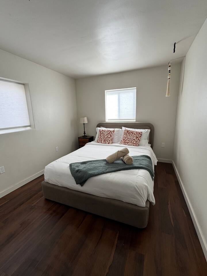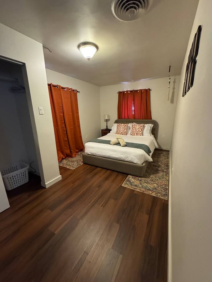 Relax in this cozy 2bed/1bath Albuquerque centrally-located home with a spacious backyard—perfect for families, weekend getaways, business travelers or longer stays. Enjoy a quiet neighborhood just minutes from family activities, shopping and restaurants. While also enjoying peace and quiet. Easy access to I-40 and I-25. The house offers self check in with code access door; personalized code will be provided morning of check in. Driveway for one vehicle and street parking available.